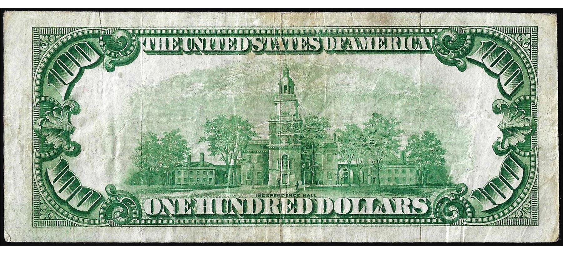 One 1929 $100 Federal Reserve Bank Note Chicago.