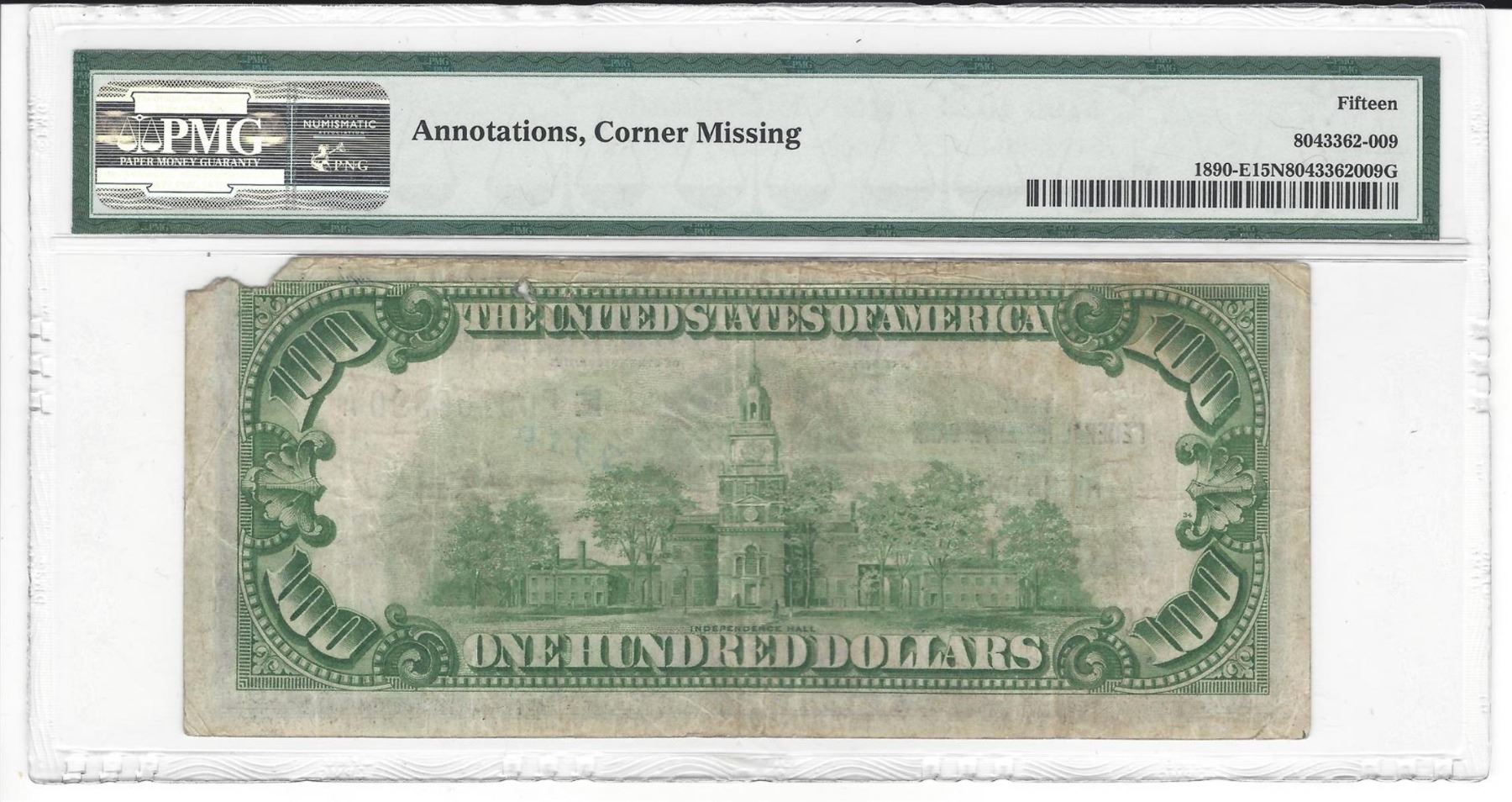 One 1929 $100 Federal Reserve Bank Note Richmond PMG Choice Fine 15 Net. PMG certified!