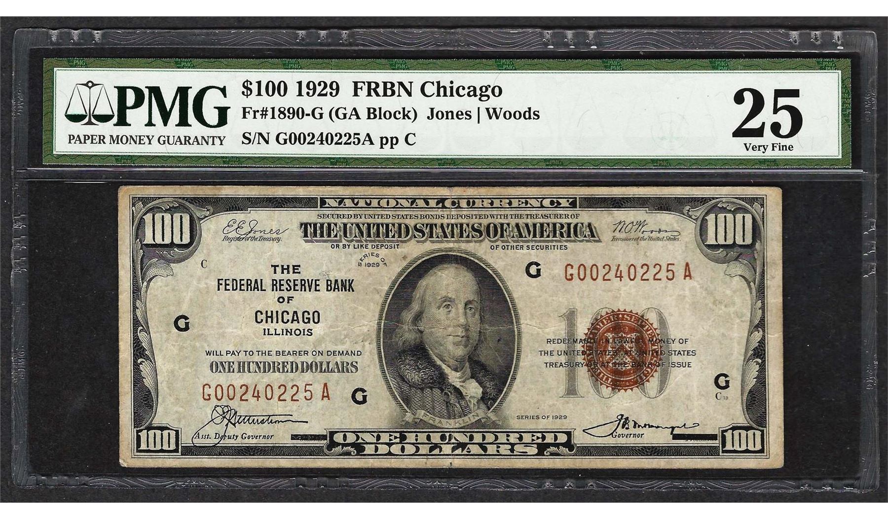 1929 $100 Federal Reserve Bank of Chicago Fr.1890-G PMG Very Fine 25