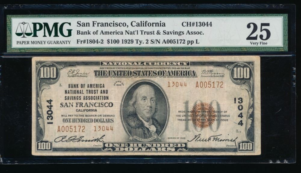One 1929 $100 San Francisco CA National Bank Note PMG 25.