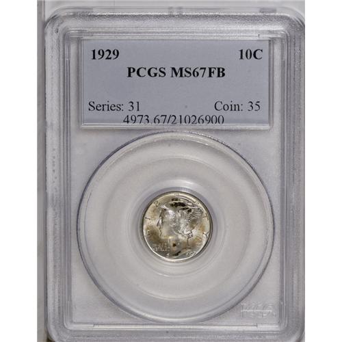 1929 10C MS67 Full Bands PCGS. Blushes of green-gold p