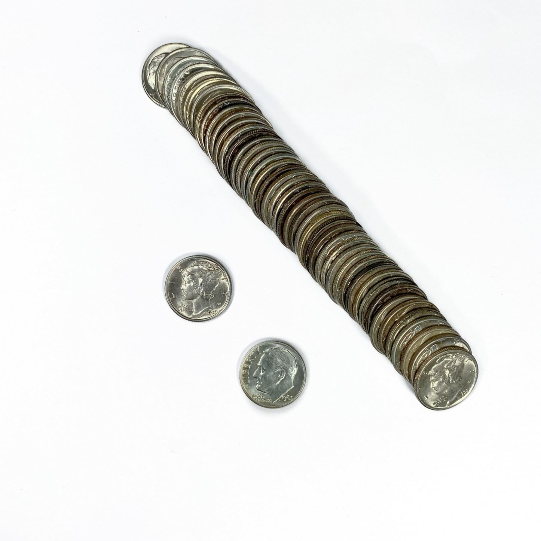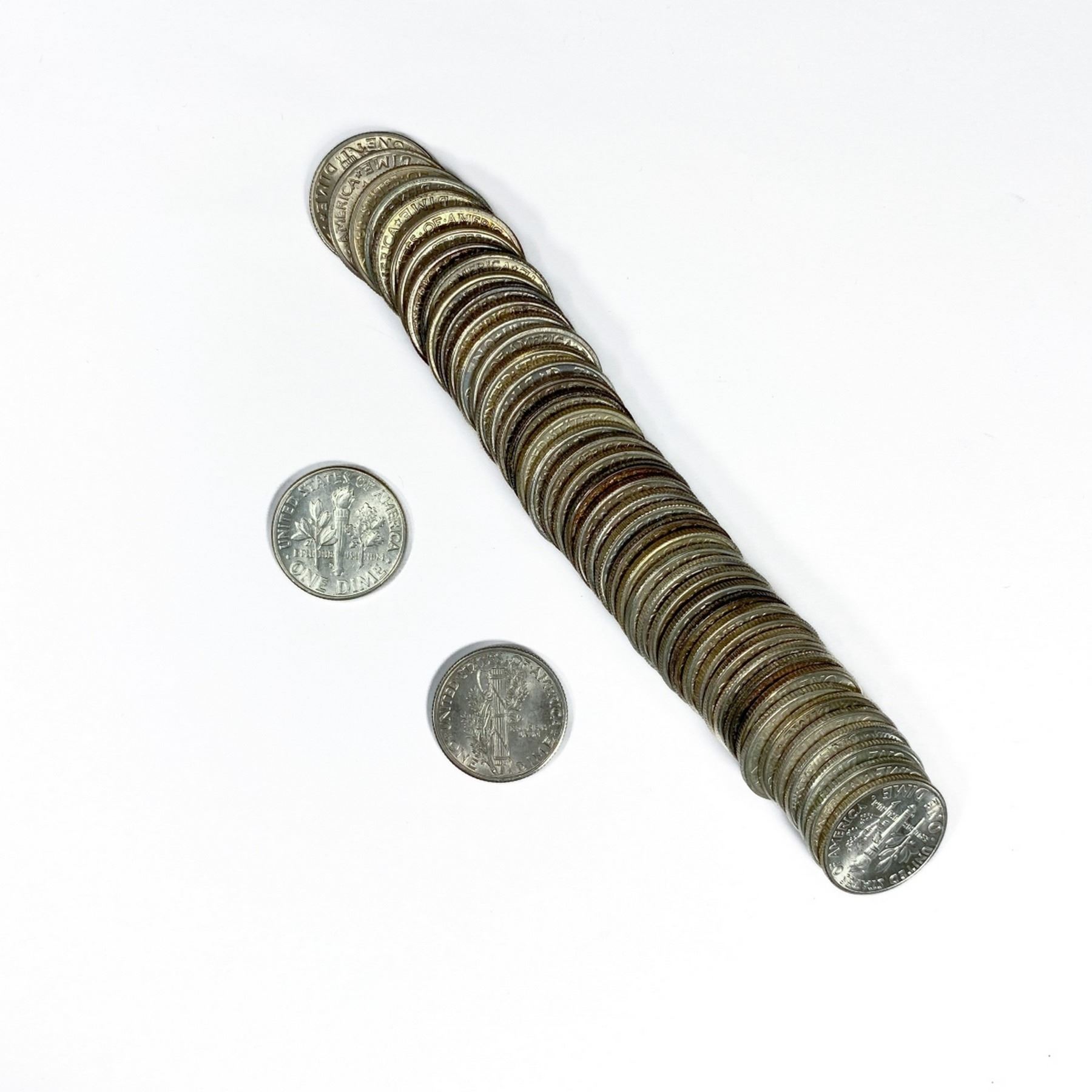 1929-1964 Misc Silver Dime Roll (48 Coins)