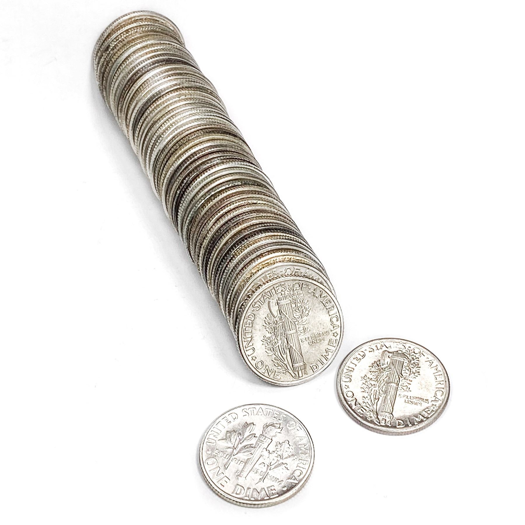 1929-1964 Misc Silver Dime Roll (48 Coins)