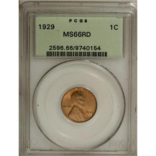 <B>1929 1C MS66 Red PCGS.</B></I> . PCGS Population (291/31). NGC Census: (183/37). Mintage: 185,262,000. Numismedia Wsl. Price for NGC/PCGS coin in MS66: $300. (#2596)<BR><BR><B>Coin Engraver:</B> Victor D. Brenner<BR><BR><b>Shipping:</b> Coins & Currency (<a target="_blank" href="http://www.heritageauctions.com/common/shipping.php">view shipping information</a>)