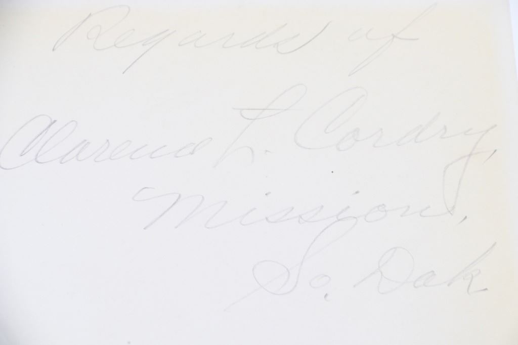 For your bidding pleasure in this lot is a 1929 first edition of "Sioux Memory Gems" poem book by Myrtle Miller Anderson. Myrtle Miller was 21 years old when she married John A. Anderson, the Manager of the J. P. Jordan Indian Trading post in the Rosebud Indian Reservation in South Dakota, and went to live with him in 1893. The book is illustrated with photographs taken by her husband, John A. Anderson. Myrtle's poems honor the Native American families she came to love while living among them, mourning their loss. The book has a faux leather tool cover and glossy heavy paper pages. The cover of the book has some wear, but the inside pages are in very good condition for their almost 100-year age. The book measures 10 5/8" x 8" x 1/2".