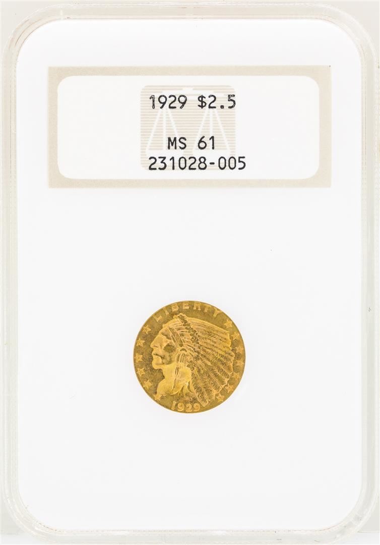 One 1929 $2 1/2 Indian Head Quarter Eagle Gold Coin NGC MS61. NGC Certified.