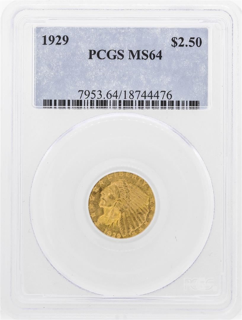 One 1929 $2 1/2 Indian Head Quarter Eagle Gold Coin PCGS MS64. PCGS Certified.