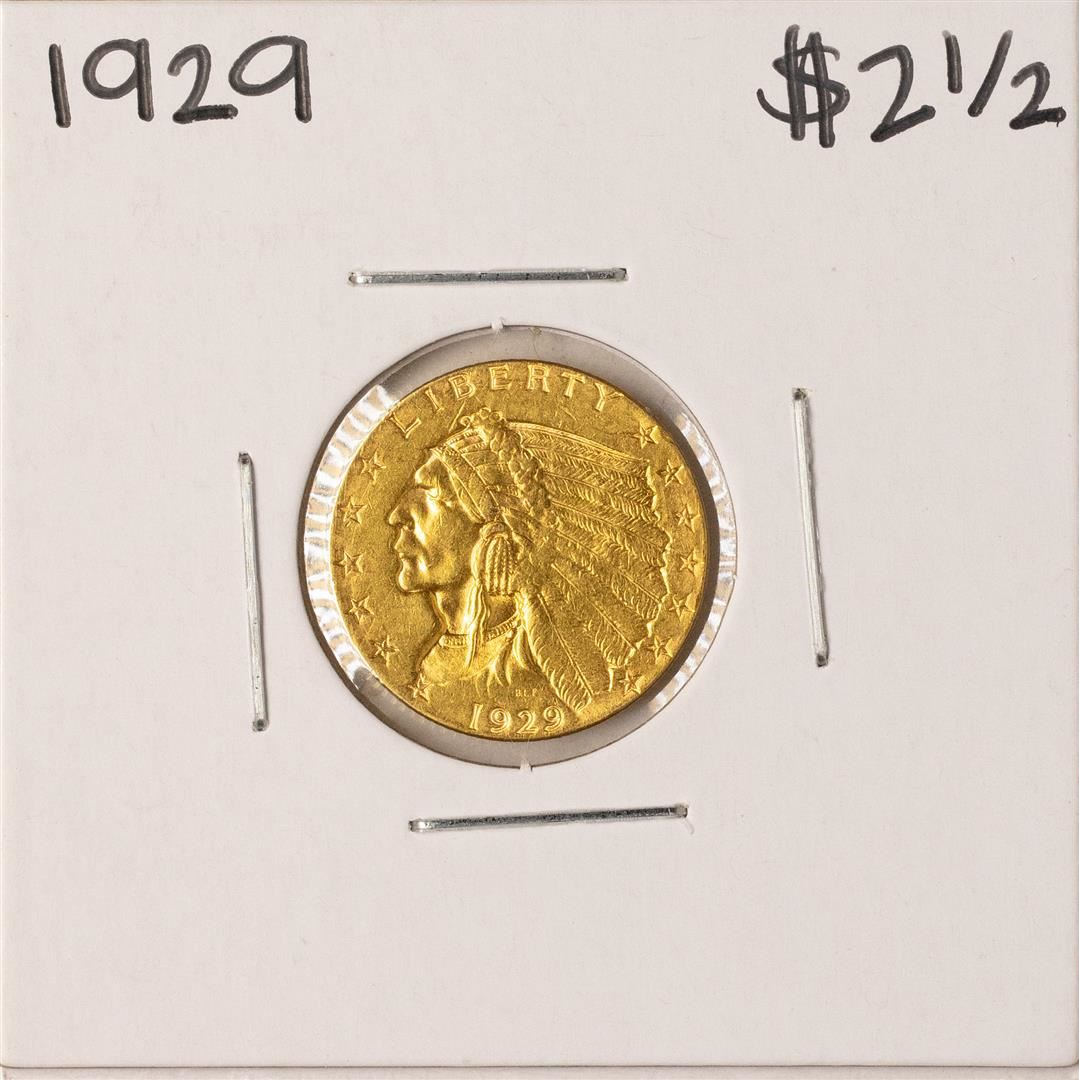One 1929 $2 1/2 Indian Head Quarter Eagle Gold Coin.