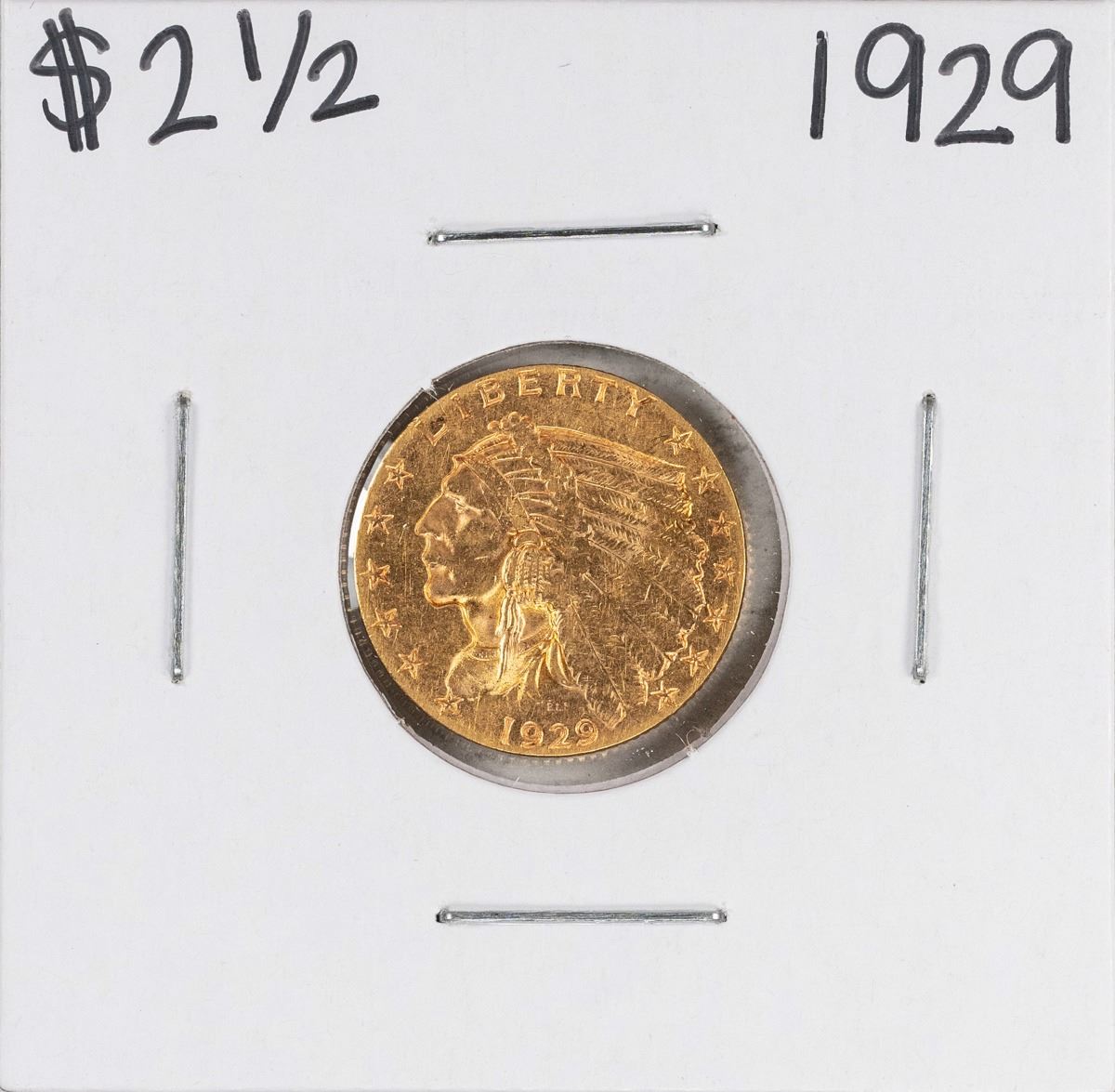 One 1929 $2 1/2 Indian Head Quarter Eagle Gold Coin.