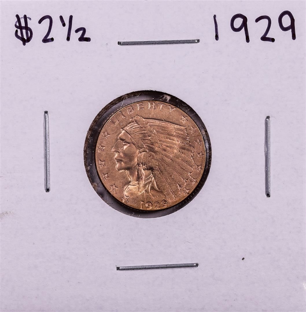 One 1929 $2 1/2 Indian Head Quarter Eagle Gold Coin.