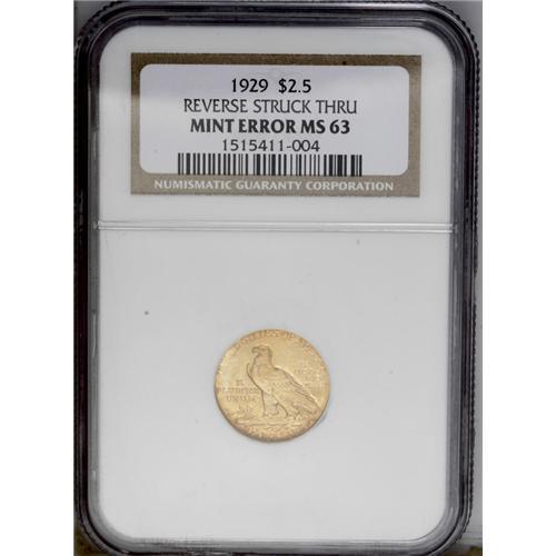 1929 $2 1/2 Indian Quarter Eagle--Reverse Struck Throu 1929[$2 1/2] Indian Quarter Eagle--Reverse St