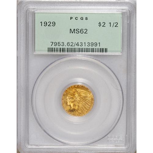 1929 $2 1/2 MS62 PCGS. PCGS Population (3147/3856)