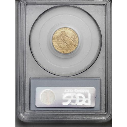 <B>1929<$2 1/2> MS62 PCGS.</B></I> Soft, satiny mint luster and subdued honey-gold patina are observed on each of the two sides. Minimally marked for the assigned grade level.