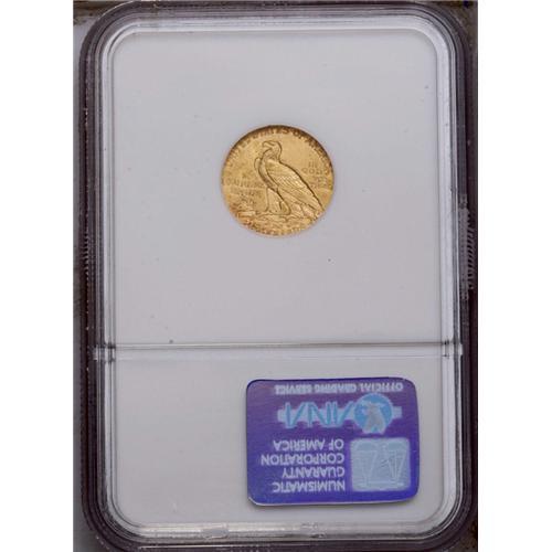 <B>1929<$2 1/2> MS64 NGC.</B></I> An extremely bright coin with great, honey-gold luster and a lot of eye appeal. Only a couple of marks above the eagle's head restrict this piece from a full Gem rating.