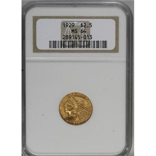 <B>1929 $2 1/2 MS64 NGC.</B></I> A pleasing near-Gem issue with only a few minute marks that account for the grade. Nicely struck throughout.<BR><BR><B>Coin Engraver:</B> Bela Lyon Pratt<BR><BR><b>Shipping:</b> Coins & Currency (<a target="_blank" href="http://www.heritageauctions.com/common/shipping.php">view shipping information</a>)