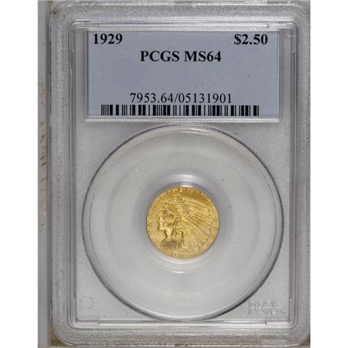 1929 $2 1/2 MS64 PCGS. Choice and sharply struck with