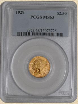 1929 $2.5 Indian MS63 PCGS 7434-09