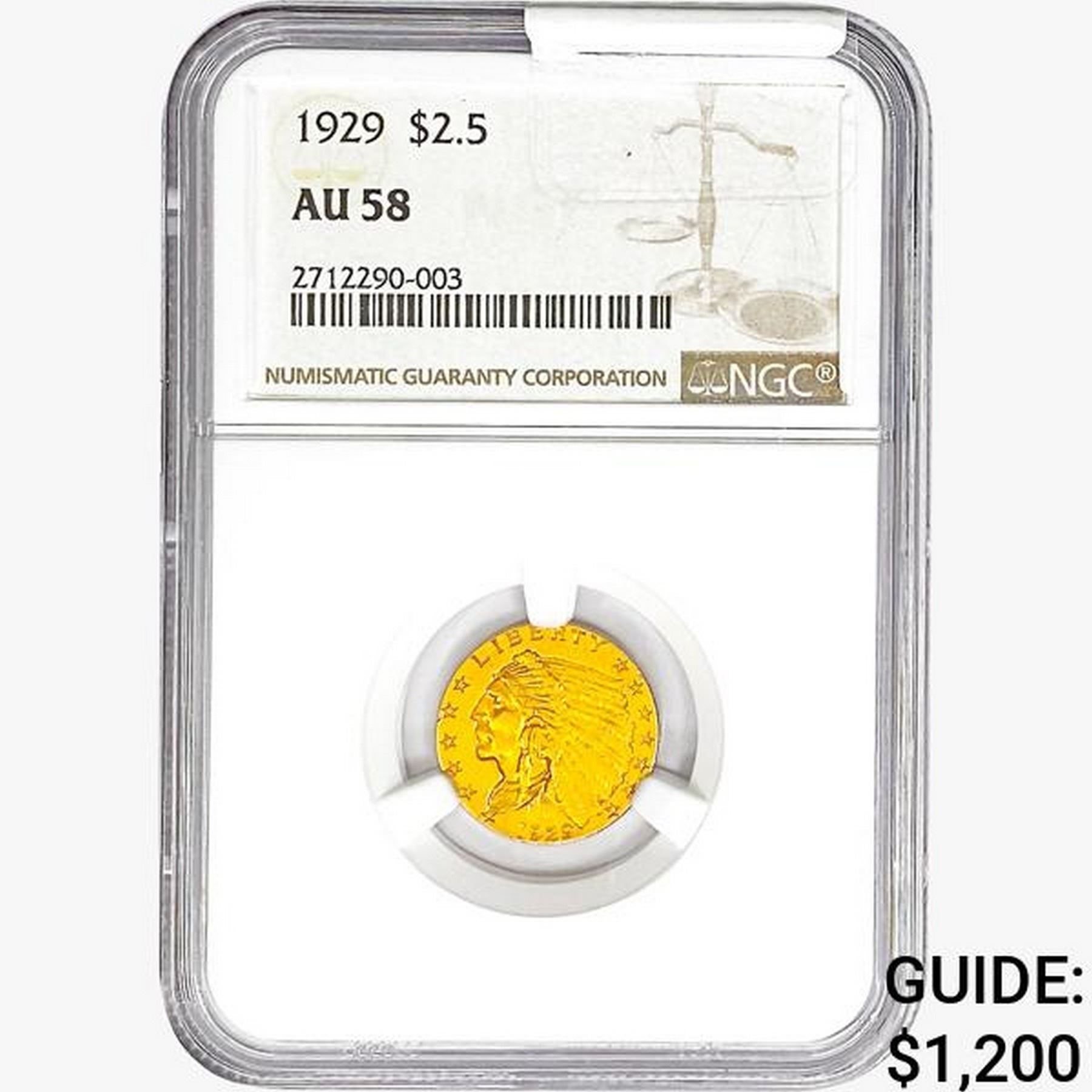 1929 $2.50 Gold Quarter Eagle NGC AU58