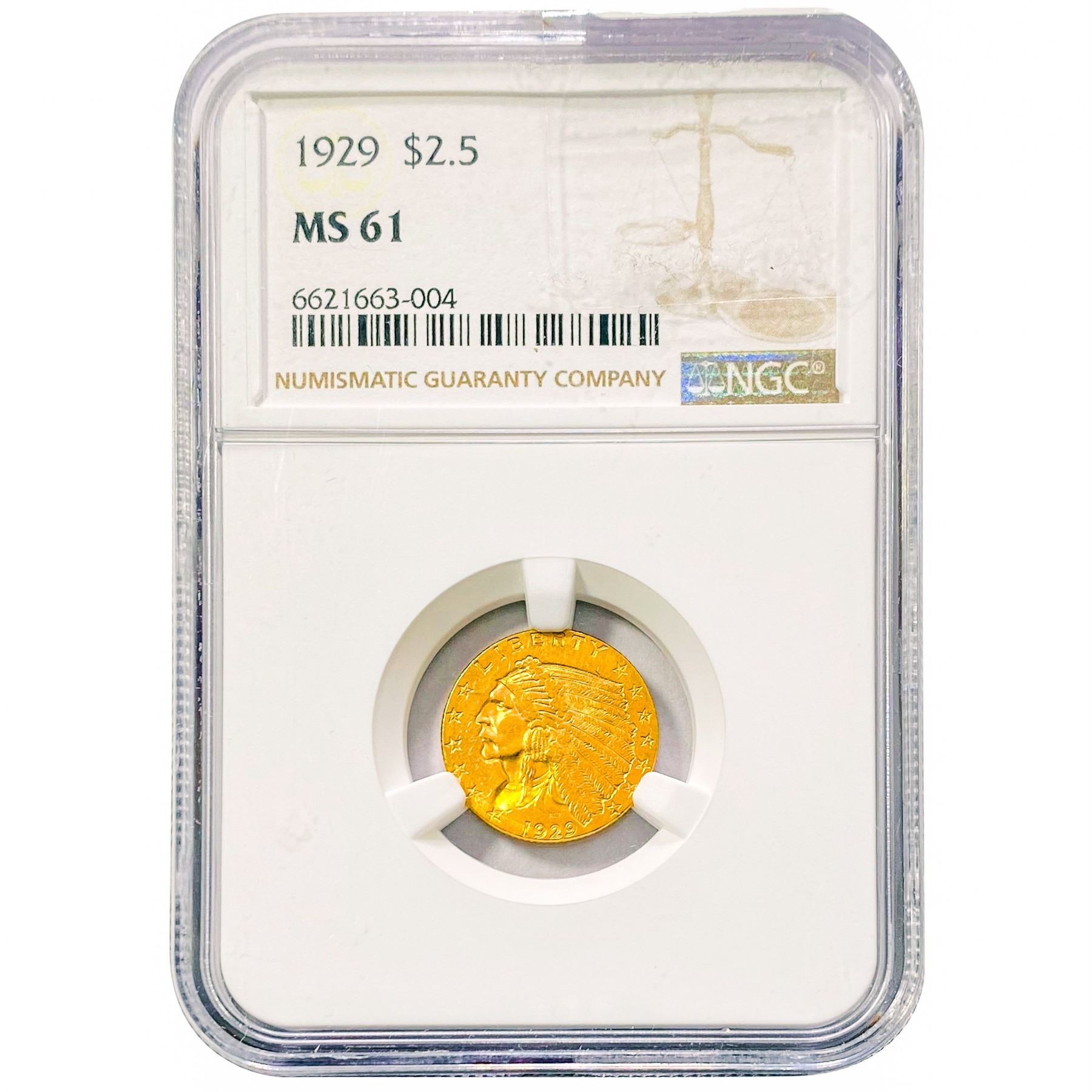 1929 $2.50 Gold Quarter Eagle NGC MS61