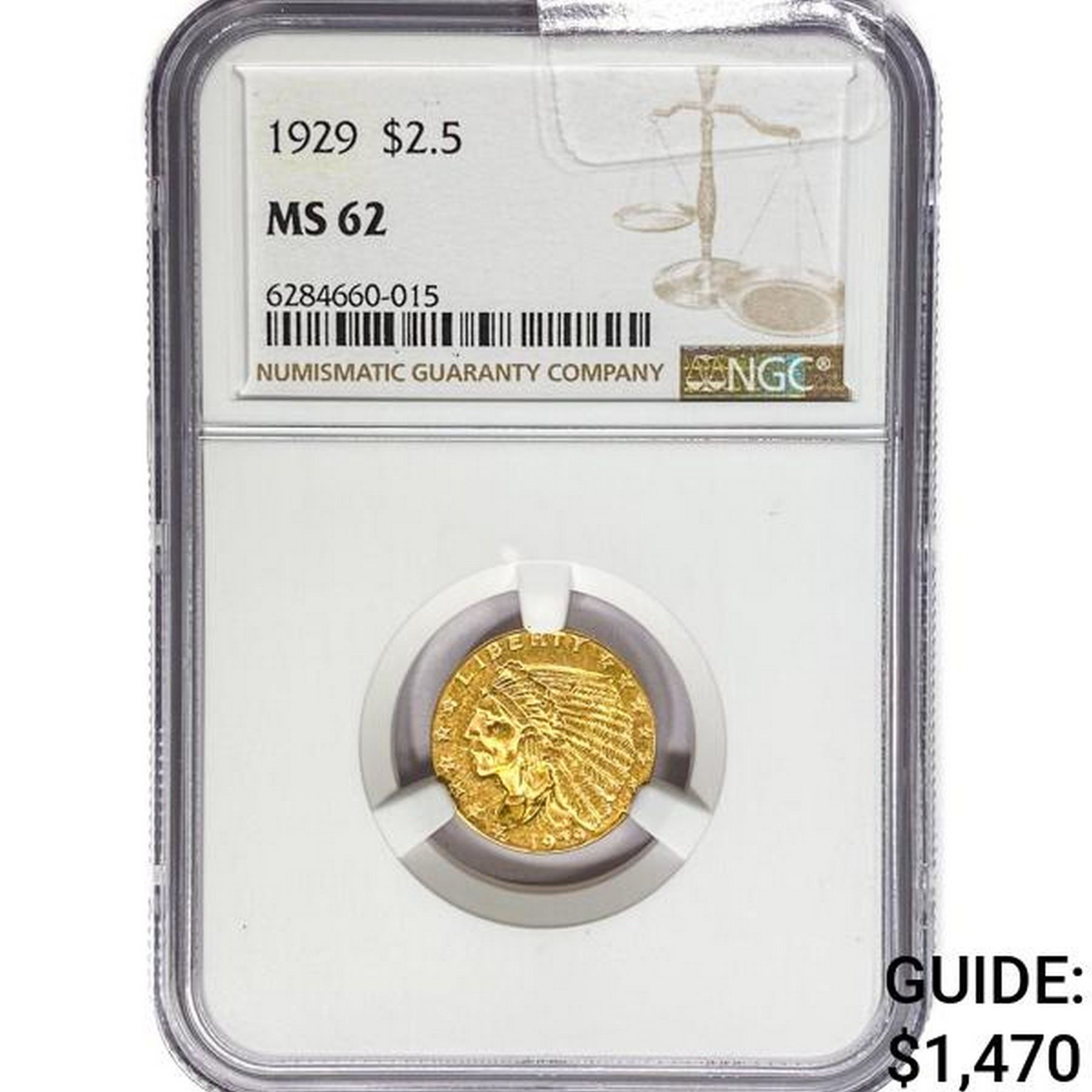 1929 $2.50 Gold Quarter Eagle NGC MS62