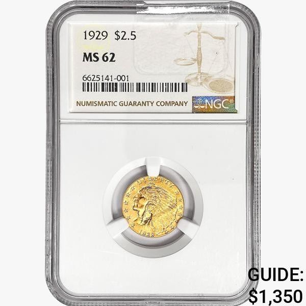 1929 $2.50 Gold Quarter Eagle NGC MS62