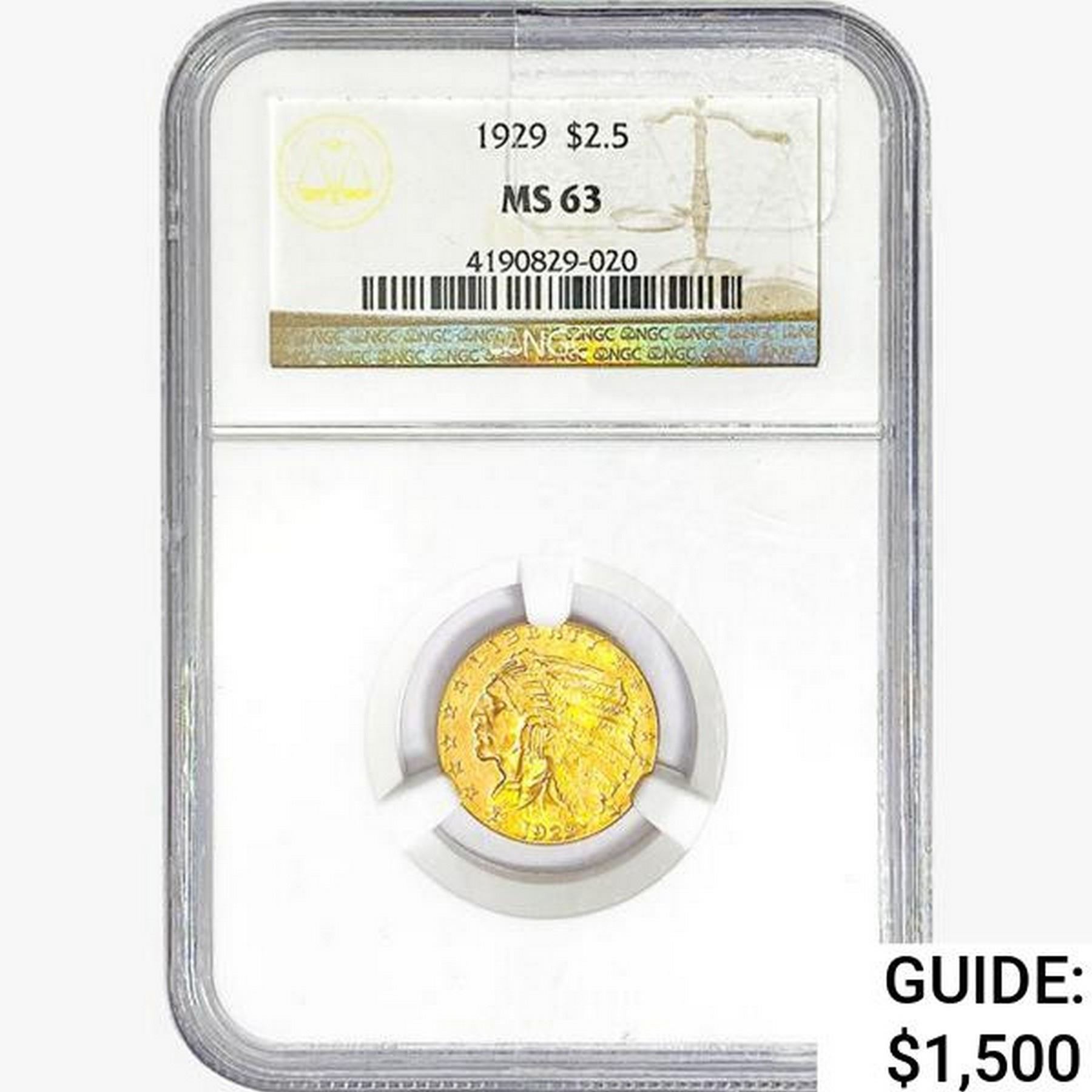 1929 $2.50 Gold Quarter Eagle NGC MS63