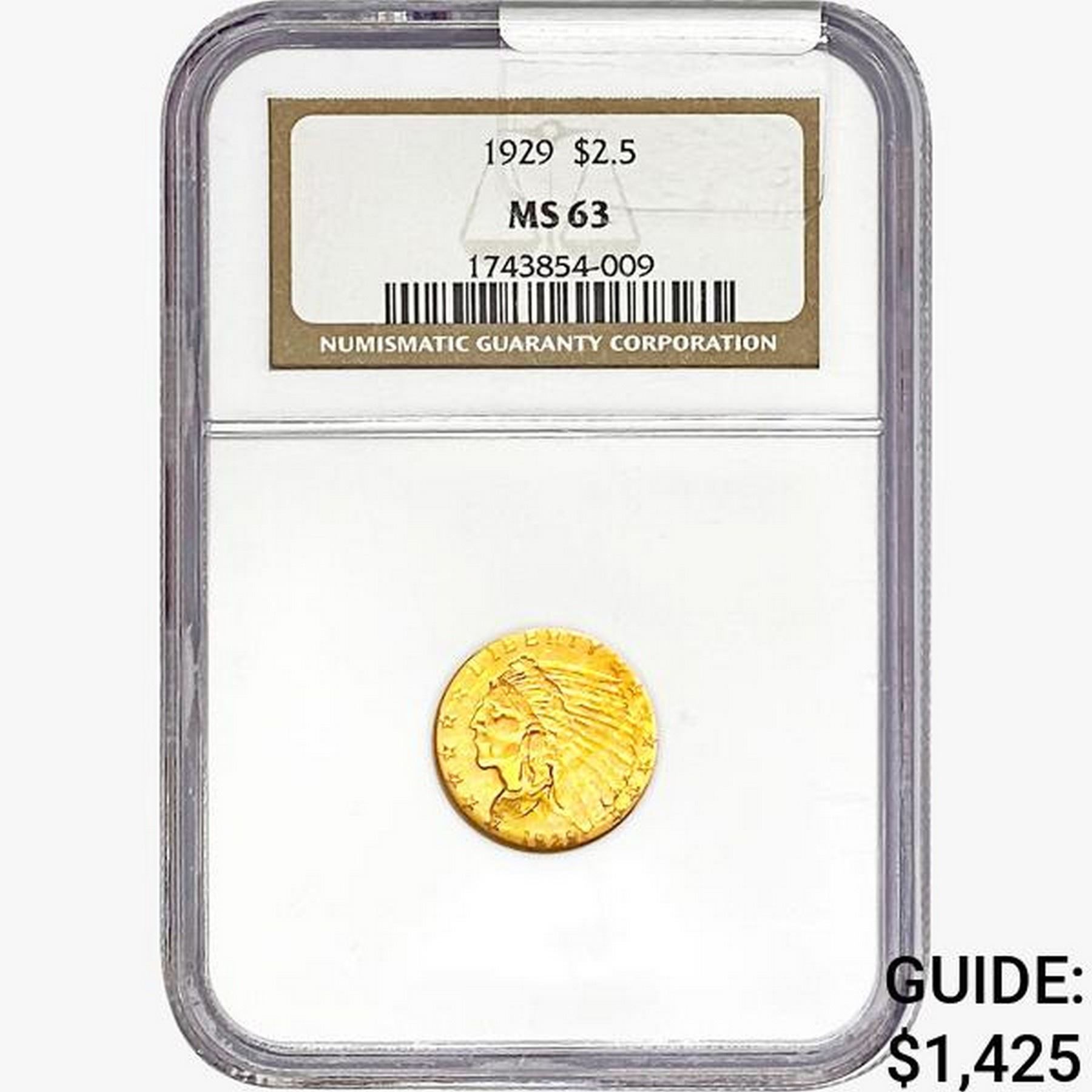 1929 $2.50 Gold Quarter Eagle NGC MS63