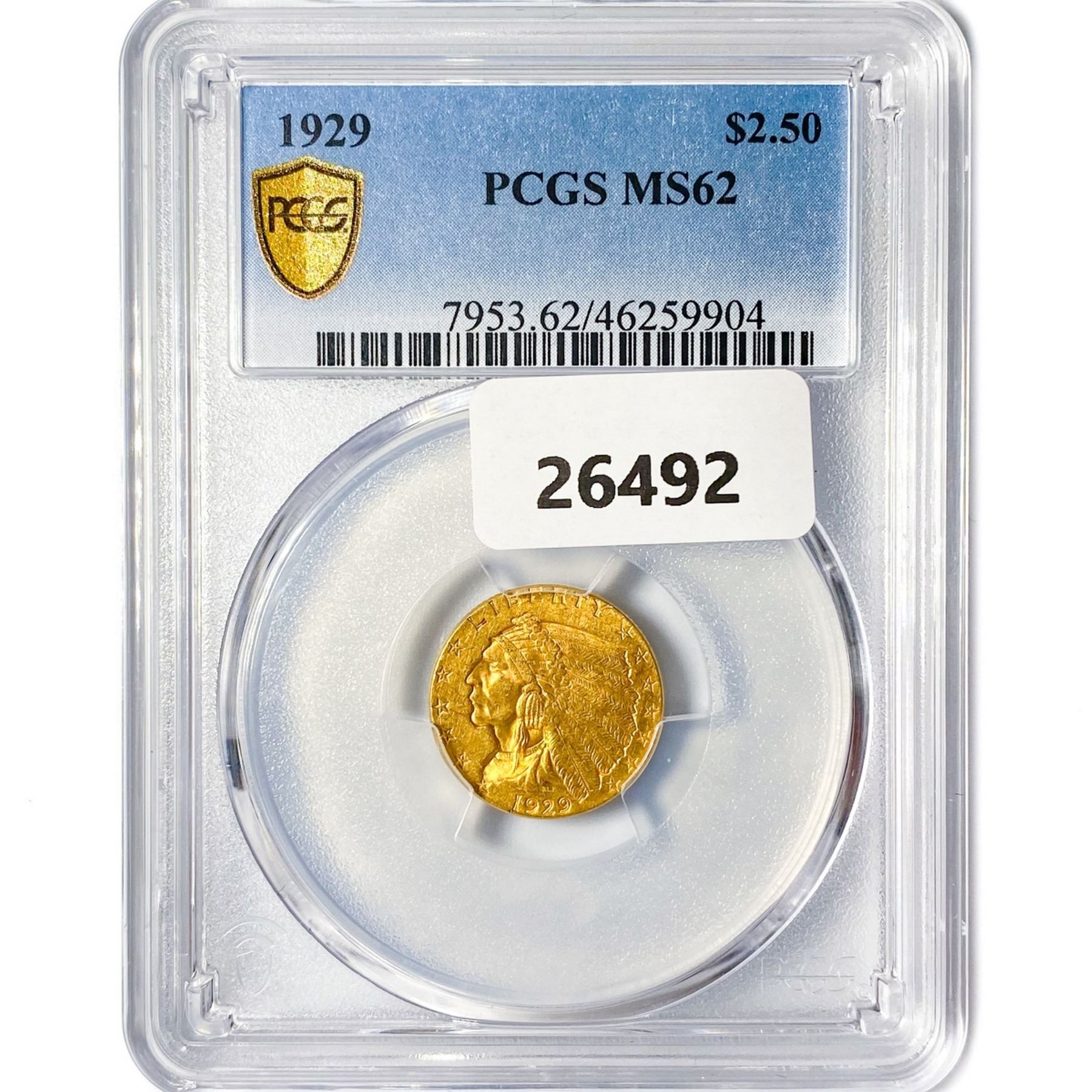 1929 $2.50 Gold Quarter Eagle PCGS MS62