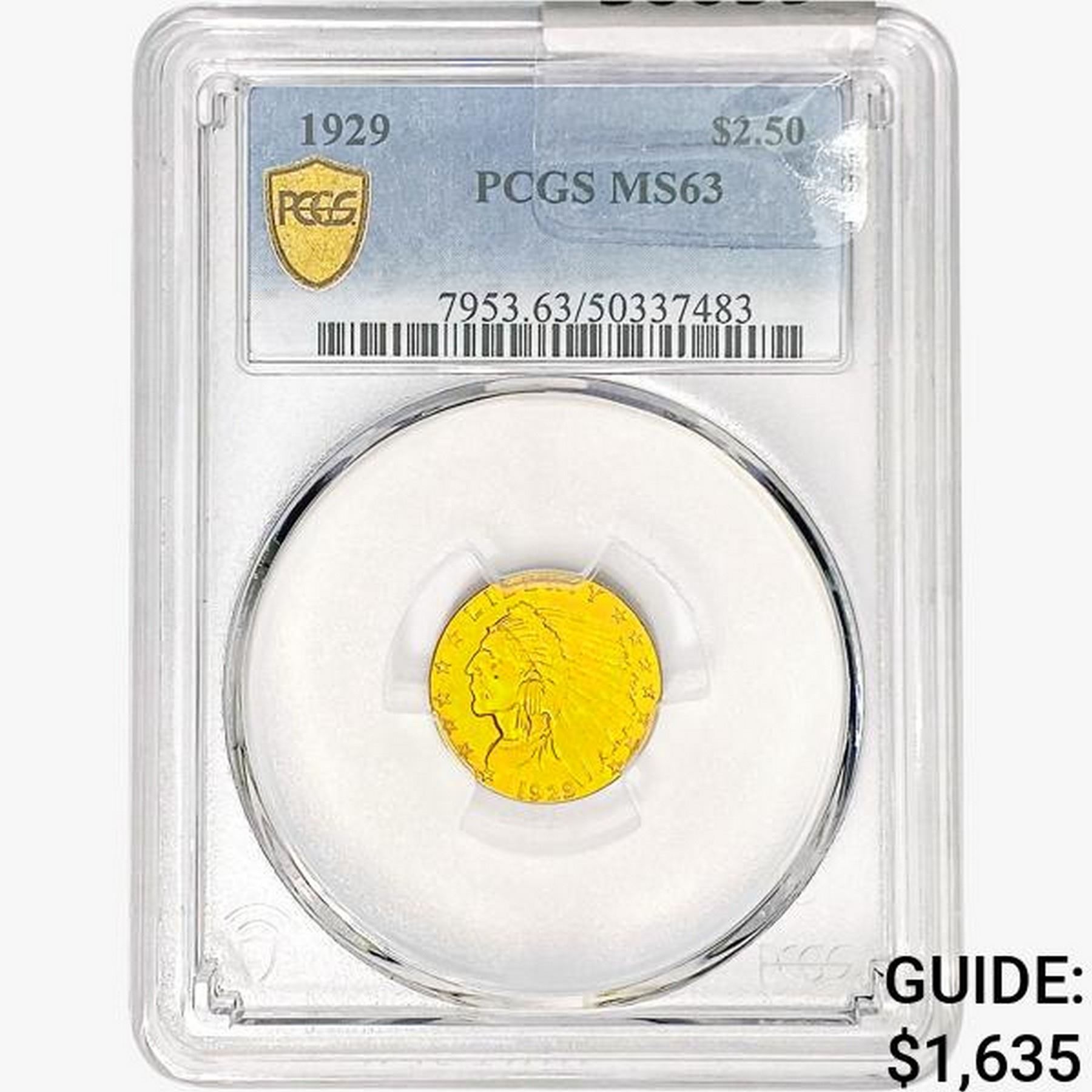 1929 $2.50 Gold Quarter Eagle PCGS MS63