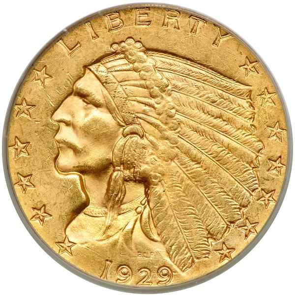 1929 $2.50 Indian. PCGS graded MS-62. Well struck (PCGS # 7953) .