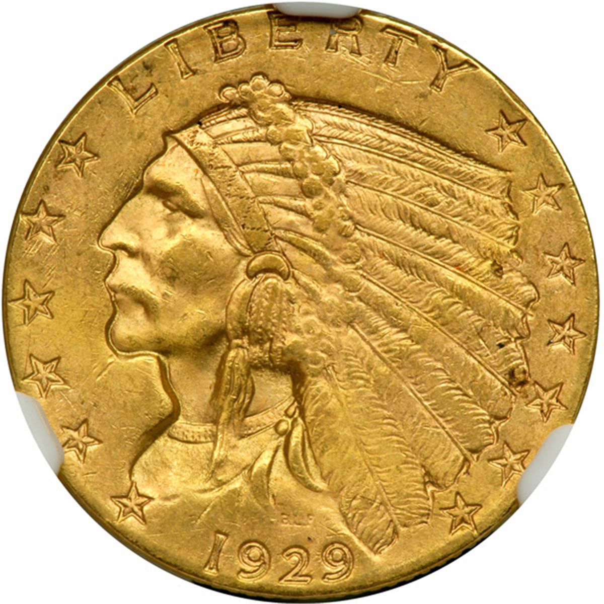 1929 $2.50 Indian. NGC Unc Details, obv improperly cleaned. Lightly toned (PCGS # 7953) .