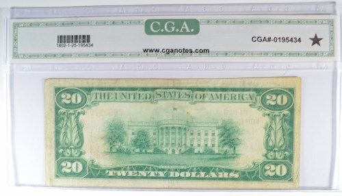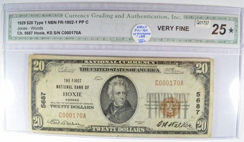 1929 $20.00 NATIONAL NOTE, HOXIE KS, CHARTER  #5687, CGA 25