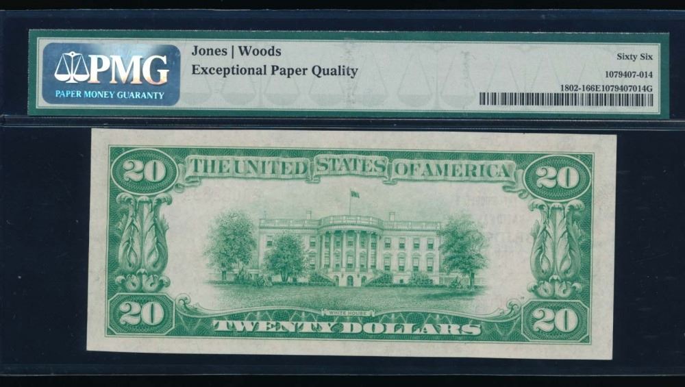 One 1929 $20 Bridgeton National Bank Note PMG 66EPQ.