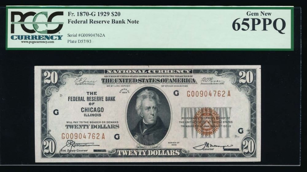 One 1929 $20 Chicago Federal Reserve Bank Note PCGS 65PPQ.