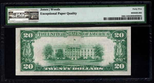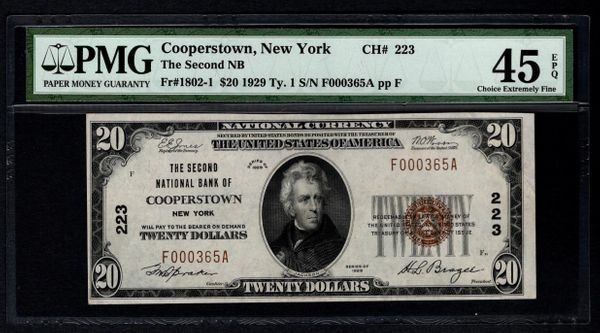 One 1929 $20 Cooperstown National Bank Note PMG 45EPQ.