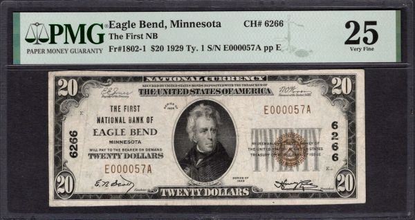 One 1929 $20 Eagle Bend MN National PMG 25.