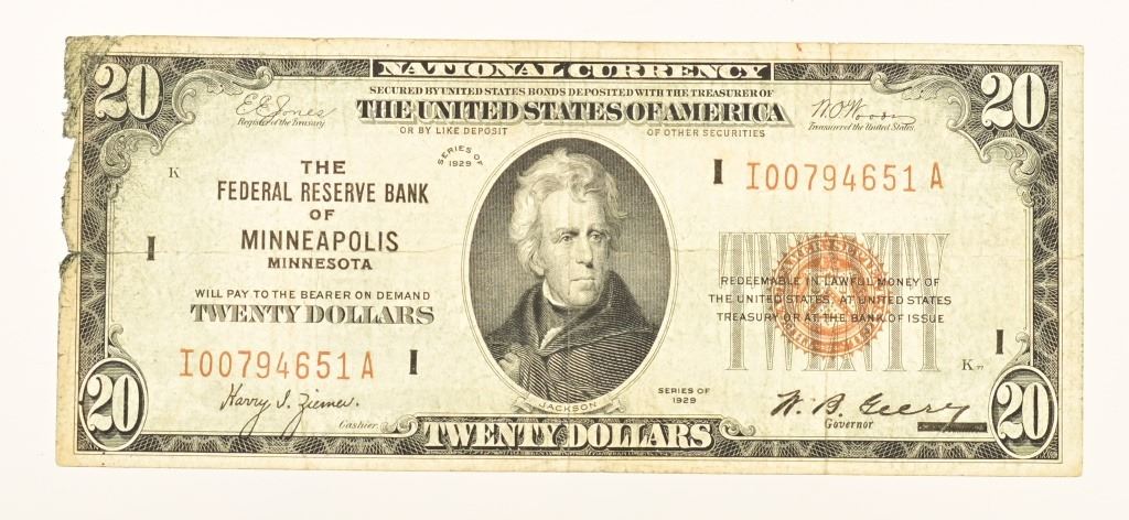 1929 $20 Federal Note of Minneapolis, Minnesota