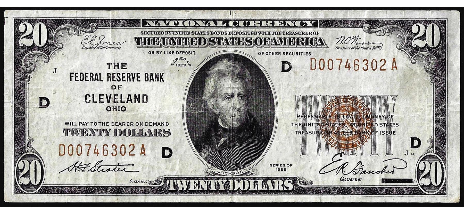 One 1929 $20 Federal Reserve Bank Note Cleveland.