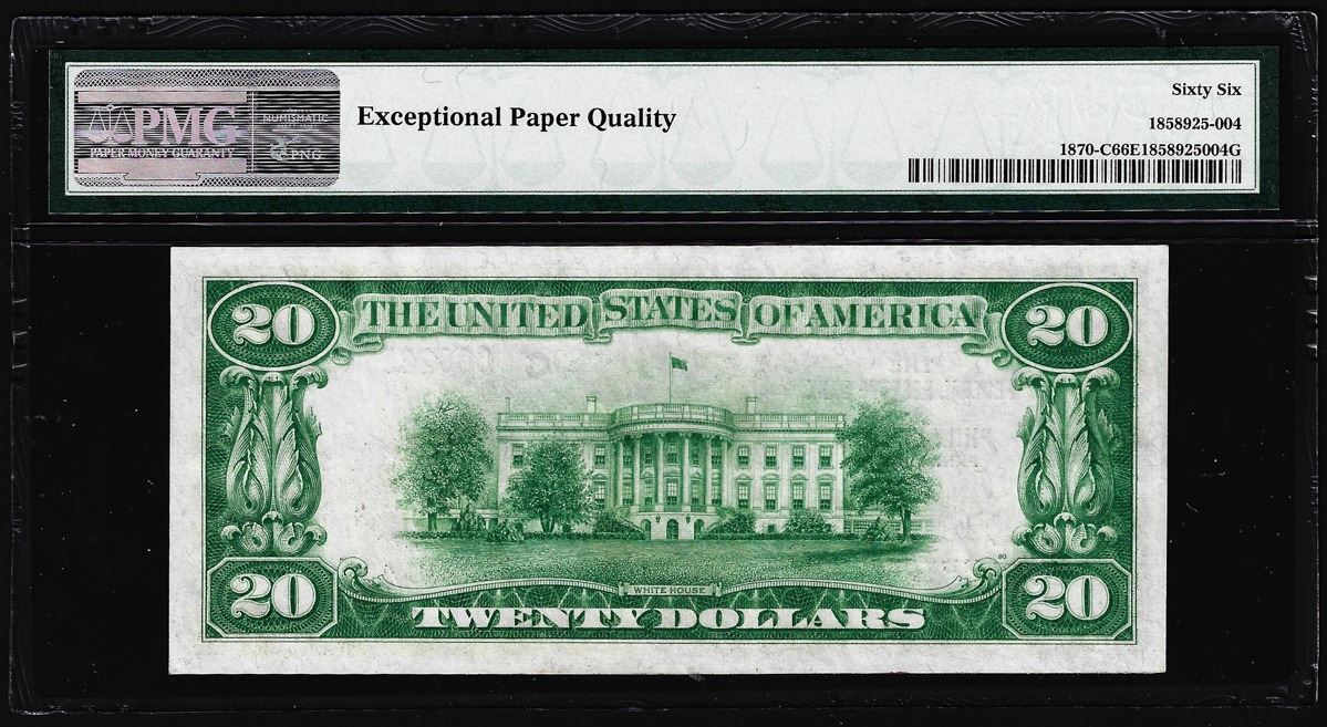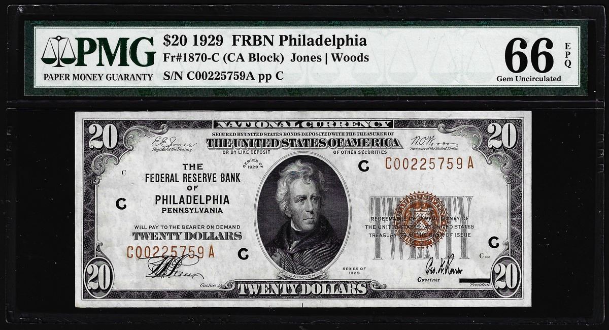 1929 $20 Federal Reserve Bank Note Philadelphia Fr.1870-C PMG Gem Uncirculated 66EPQ