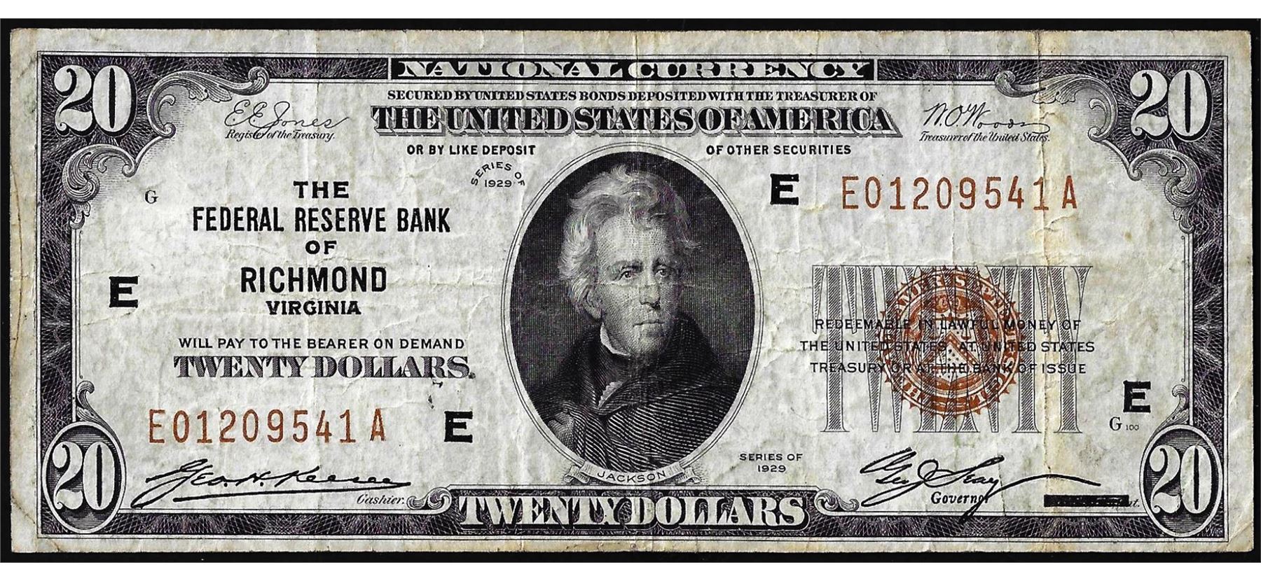 One 1929 $20 Federal Reserve Bank Note Richmond.