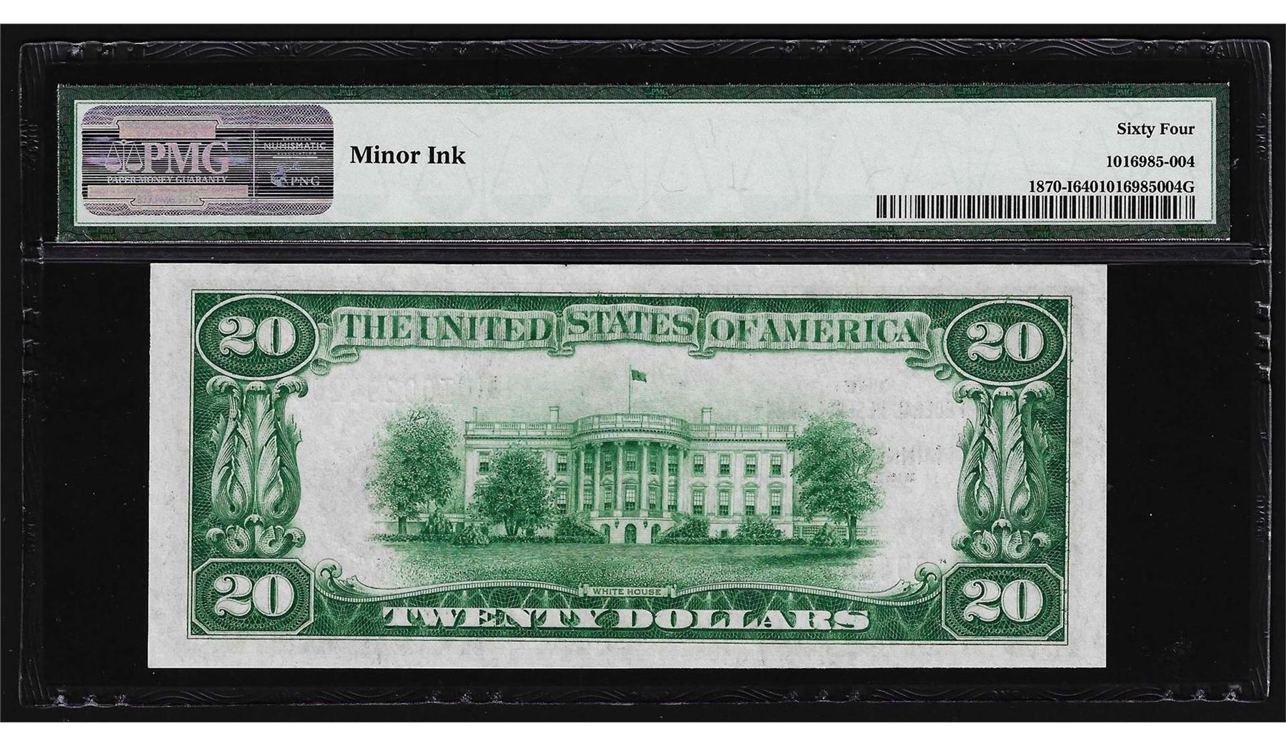 1929 $20 Federal Reserve Bank of Minneapolis Note PMG Choice Uncirculated 64