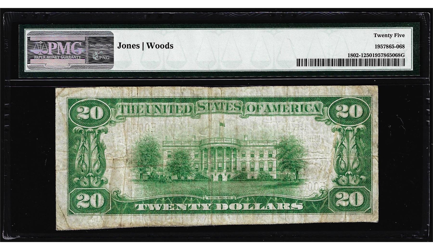 One 1929 $20 First NB of Washington, OK CH# 10277 National Currency Note PMG Very Fine 25. PMG Certified.