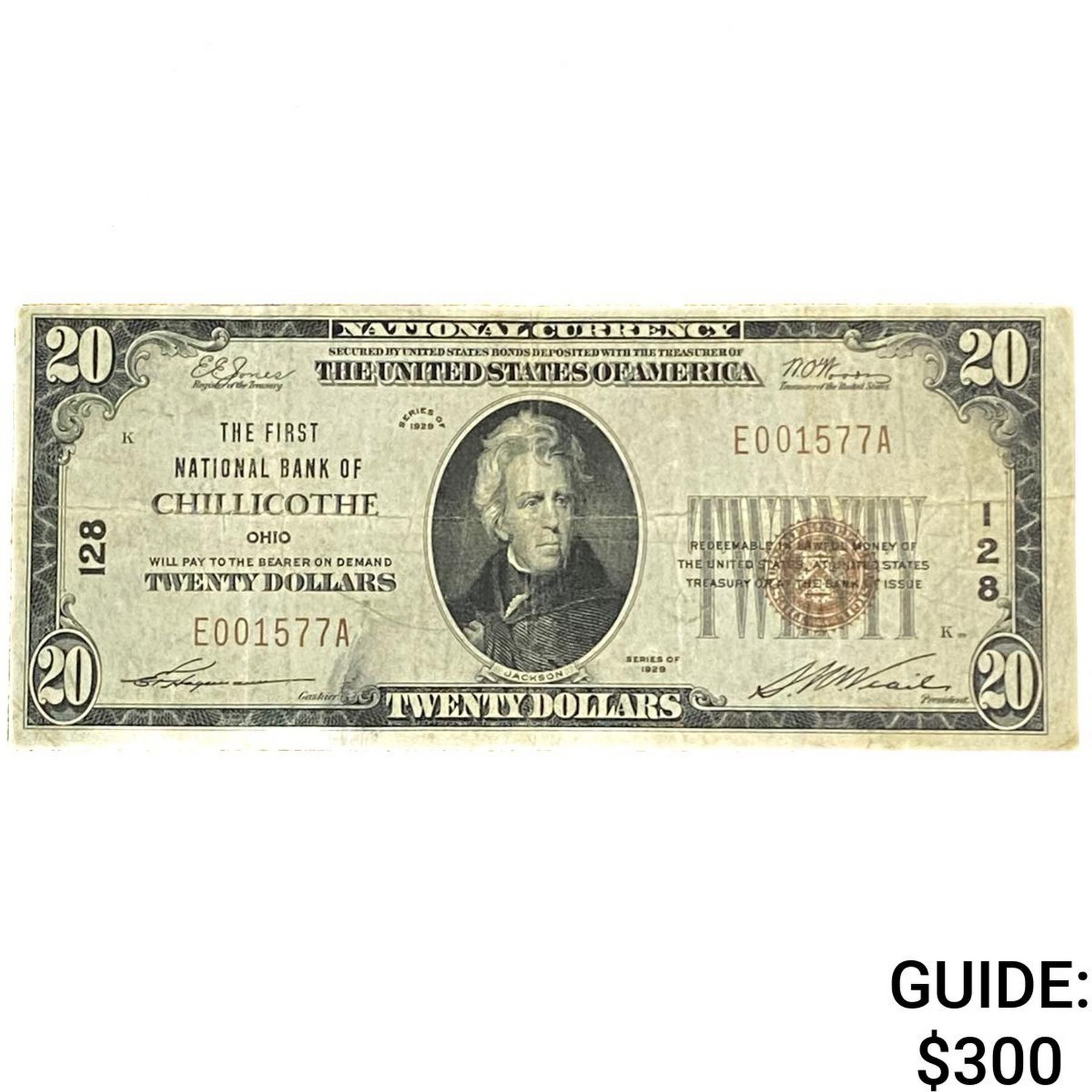1929 $20 First National Bank Of Chillicothe OH