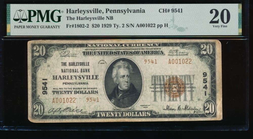 One 1929 $20 Harleysville PA National PMG 20.