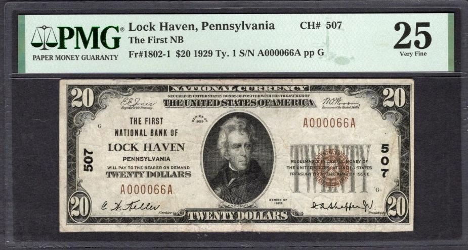 1929 $20 Lock Haven PA National PMG 25
