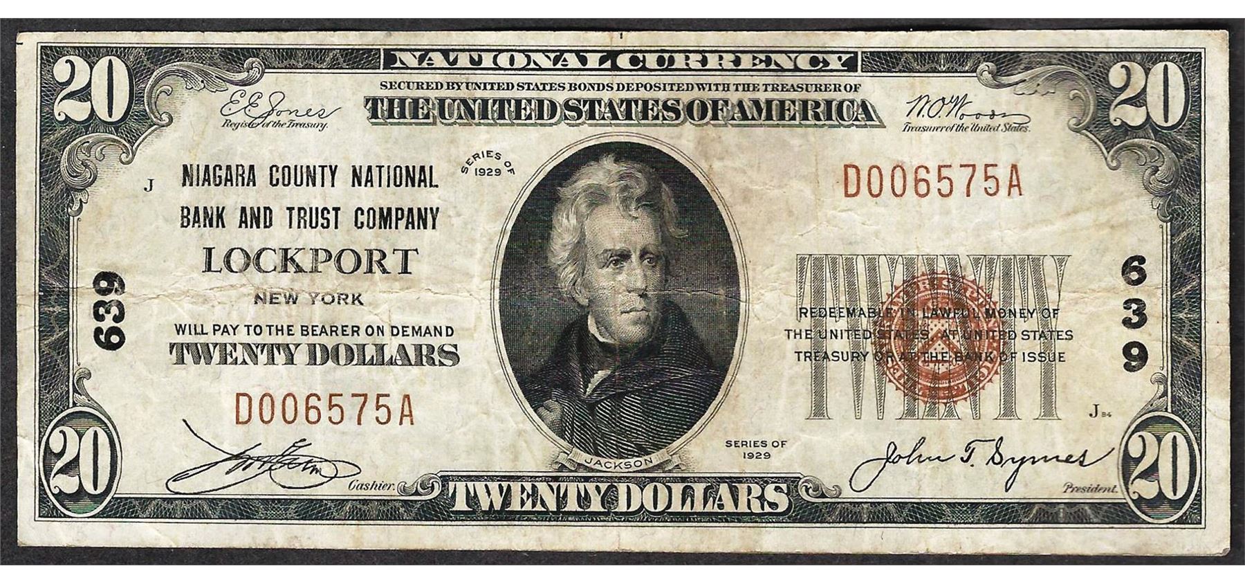 One 1929 $20 Lockport New York National Currency Note CH# 639.