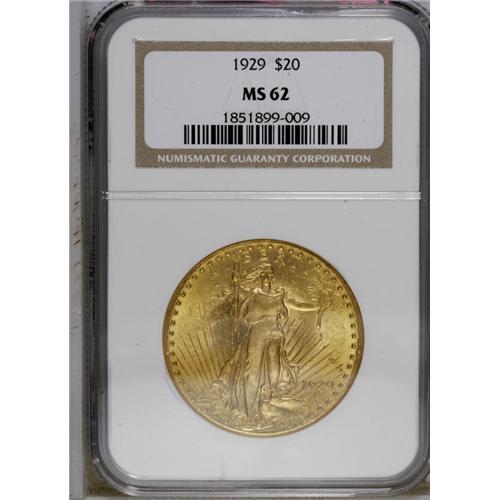 1929 $20 MS62 NGC. Once considered a great rarity, the