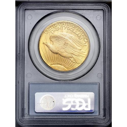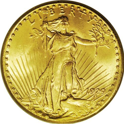 <B>1929<$20> MS64 PCGS.</B></I> The 1929 initiates the end-of-the-series rarities in the Saint-Gaudens series. While not quite as elusive as the well-known 1930s issues, the correlation of the stock market crash and the beginning of the Great Depression make it a favorite of gold collectors. Like many late-date issues in the series, the substantial mintage of the 1929 (over 1.7 million pieces) is rendered meaningless by extensive melting in the following decade. Perhaps fewer than 300 pieces remain today, almost exclusively in Mint State grades.<BR> The strong eye appeal displayed by this Choice example is a trademark of the challenging 1929 Saint-Gaudens. Both sides exhibit bountiful luster and strong highpoint definition, with a slight gleam of reddish patina throughout. Only a few incidental abrasions are noticed on the obverse, most within or just above the sun's rays on either side of the portrait. Modest marks widely dispersed over the eagle's wings are of relatively little distraction. All in all, a significant find for the discriminating Double Eagle specialist.