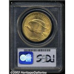 1929 $20 MS64 PCGS. The 1929 inaugurates the final elusive segment of the Saint-Gaudens Double Eagle series, with every issue from this year through 1933 being a major rarity. While this issue is the least rare of this group, it is still a coveted key date whose appearance at auction is an occasion of note among specialists. Only a minuscule percentage of the nearly 1.8 million pieces minted survived the recall of gold coinage in the 1930s. In the North Shore Collection is a Choice, frosty representative with considerable radiance from the satiny luster. Surface marks are well scattered and consistently light. With only 15-20 Gems known and the cost of acquisition at least $10,000 higher, this attractive MS64 would perhaps be a more logical choice for the serious Double Eagle collector. Important notice: Heritage usually auctions material at the rate of 200-250 lots per hour. On some occasions eBay Live bid software or the Internet may not be able to keep up with the pace of the auction. We recommend placing a realistic absentee bid now as insurance to avoid disappointment. Occasionally the auctioneer may eliminate or reject an eBay Live bid, and the auctioneer may also reopen a lot after the close of the eBay live bidding (usually because we missed an audience bid), and may reject your bid even if it shows you as the winning bidder. By bidding via eBay Live, you agree that Heritage may award the lot to another bidder at its sole discretion under the circumstances described above or any other reasonable circumstances. Also please note that all Heritage lots purchased through eBay Live carry a 20% Buyer's Premium. Please make sure you read the Terms and Conditions before you bid.