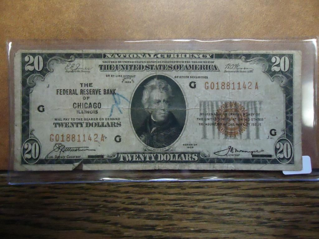 1929 $20 NATIONAL CURRENCY CHICAGO BROWN SEAL
